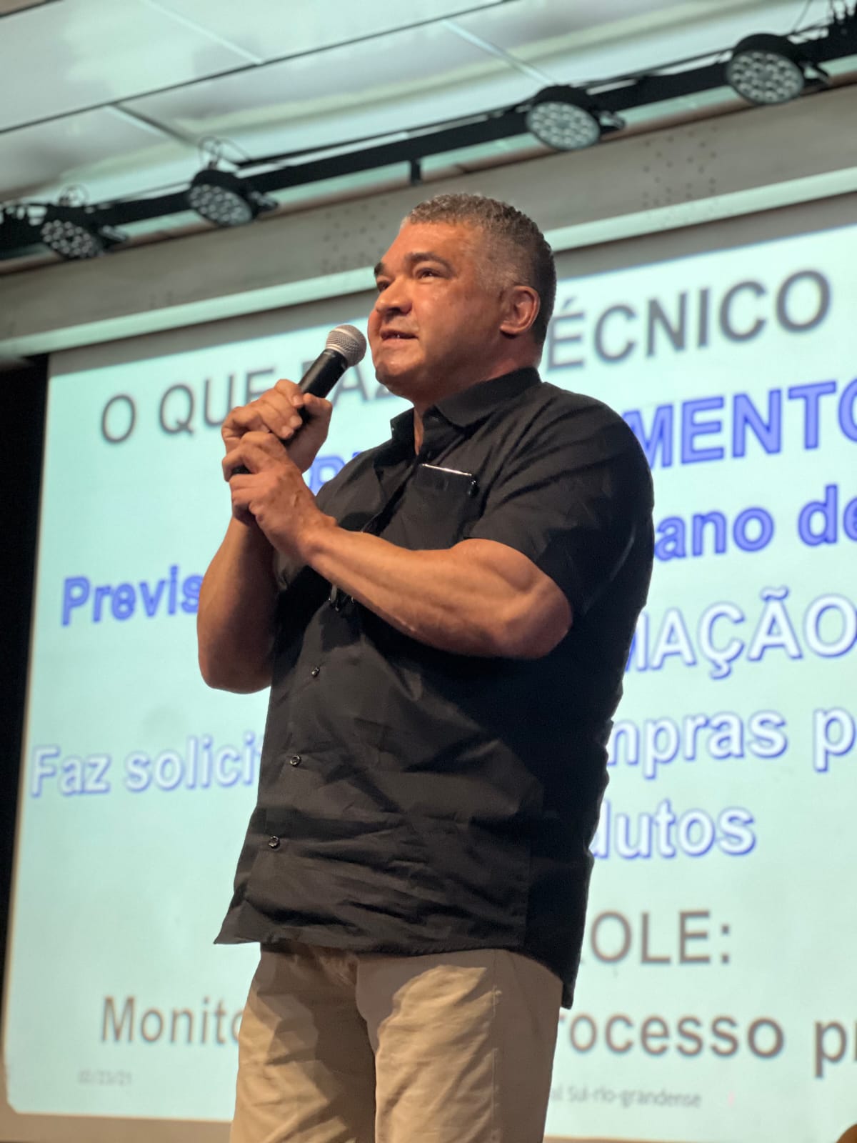 Durante o evento, o professor compartilhou sua experiência na coordenação do curso e dialogou com a comunidade escolar sobre a importância da Educação Profissional articulada à Educação de Jovens e Adultos (EJA-EPT). A atividade também possibilitou a apresentação da proposta formativa do curso de PCP, voltada à qualificação profissional de pessoas que desejam retornar aos estudos, bem como a prospectiva de novos estudantes para ingressar no IFSul.
