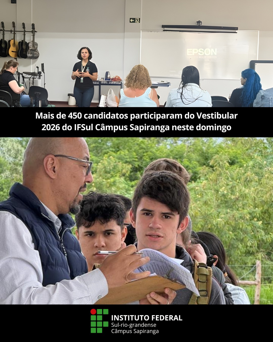 Neste domingo, dia 23 de novembro, o IFSul Câmpus Sapiranga realizou o vestibular para o preenchimento de vagas nos cursos técnicos integrados ao ensino médio e para o curso superior ofertado pela unidade.