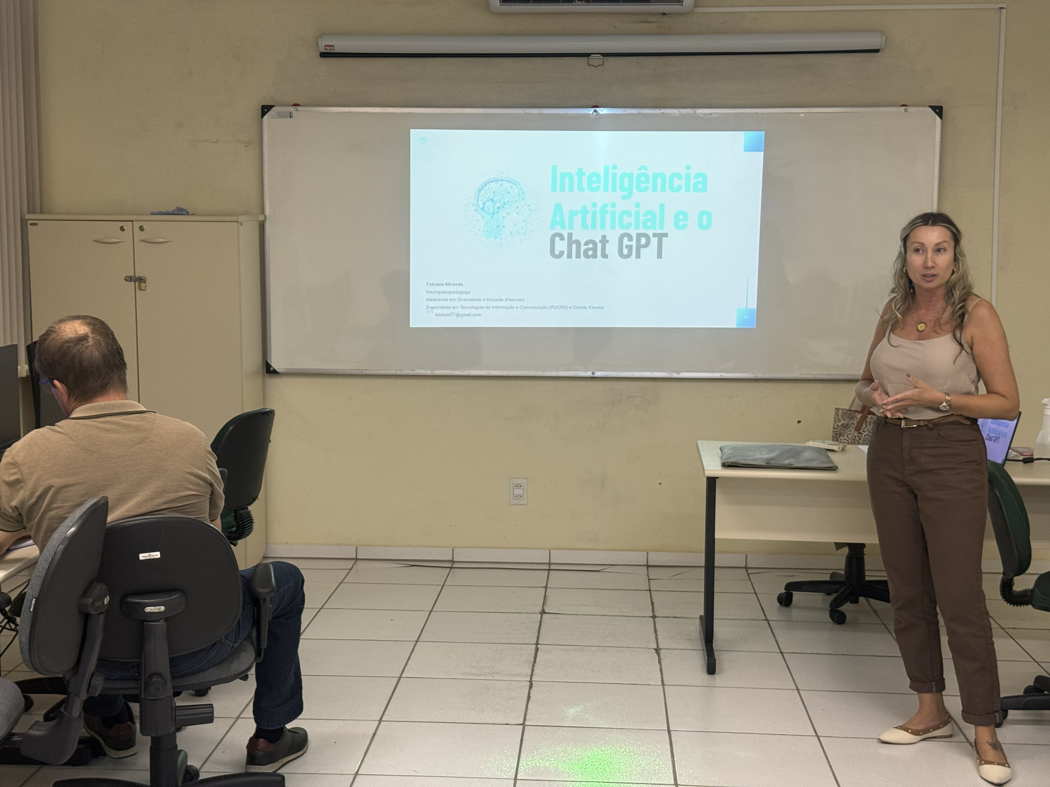 A atividade contou com a participação da mestranda Fabiane Miranda, que conduziu uma conversa com os estudantes sobre o papel da IA no processo de produção do conhecimento. Durante o encontro, a pesquisadora provocou os alunos a refletirem sobre como as ferramentas de inteligência artificial podem apoiar pesquisas, ao mesmo tempo em que levantou questionamentos sobre os dilemas éticos envolvidos em seu uso.