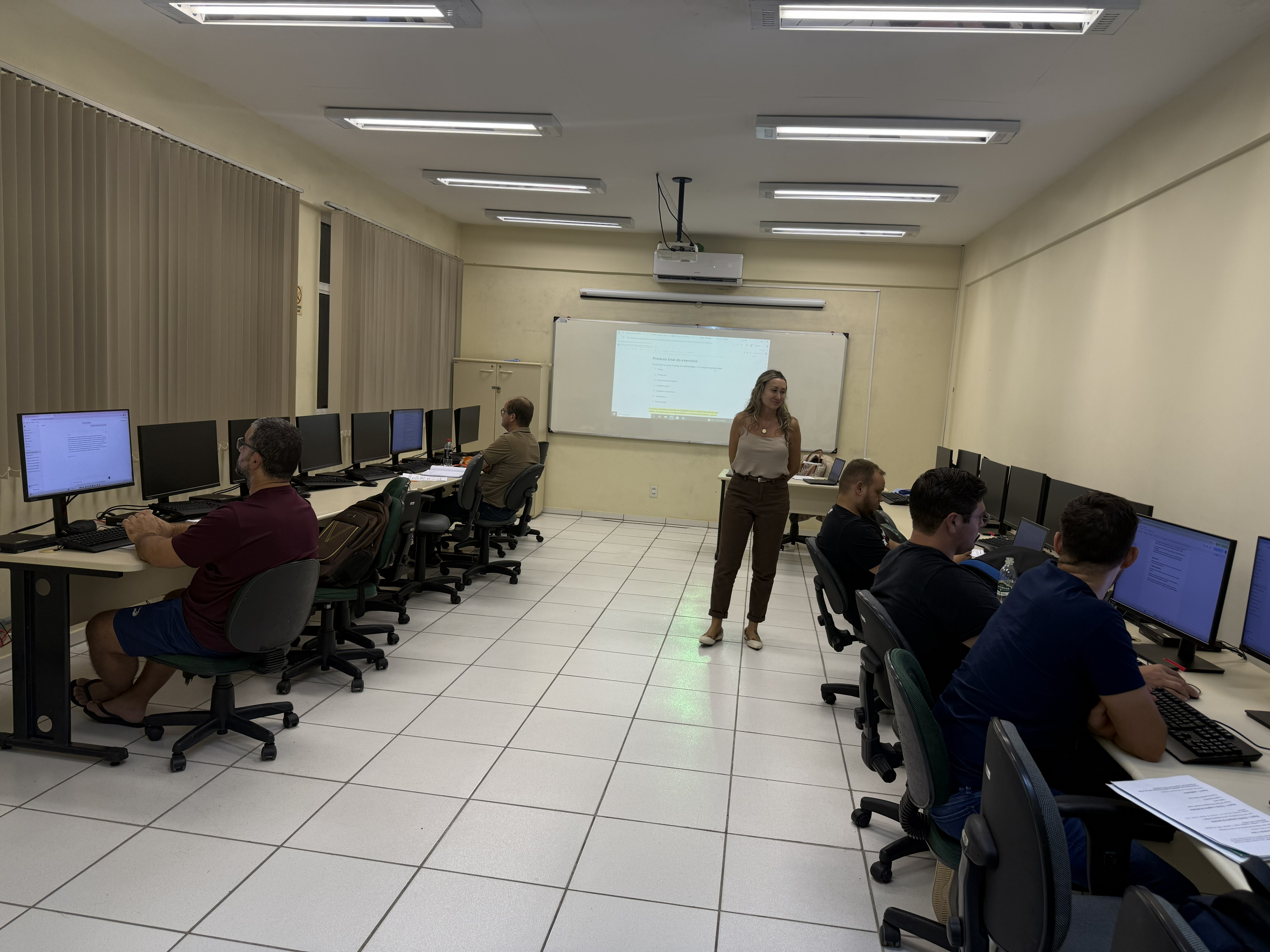 A aula integrou as atividades da disciplina Metodologia Científica I, ministrada pela professora Edilaine Vieira Lopes, que vem orientando os estudantes no desenvolvimento de práticas de investigação e produção acadêmica. Ao longo do encontro, os alunos puderam tirar dúvidas, receber dicas e orientações sobre o uso responsável da IA como ferramenta de apoio à pesquisa.